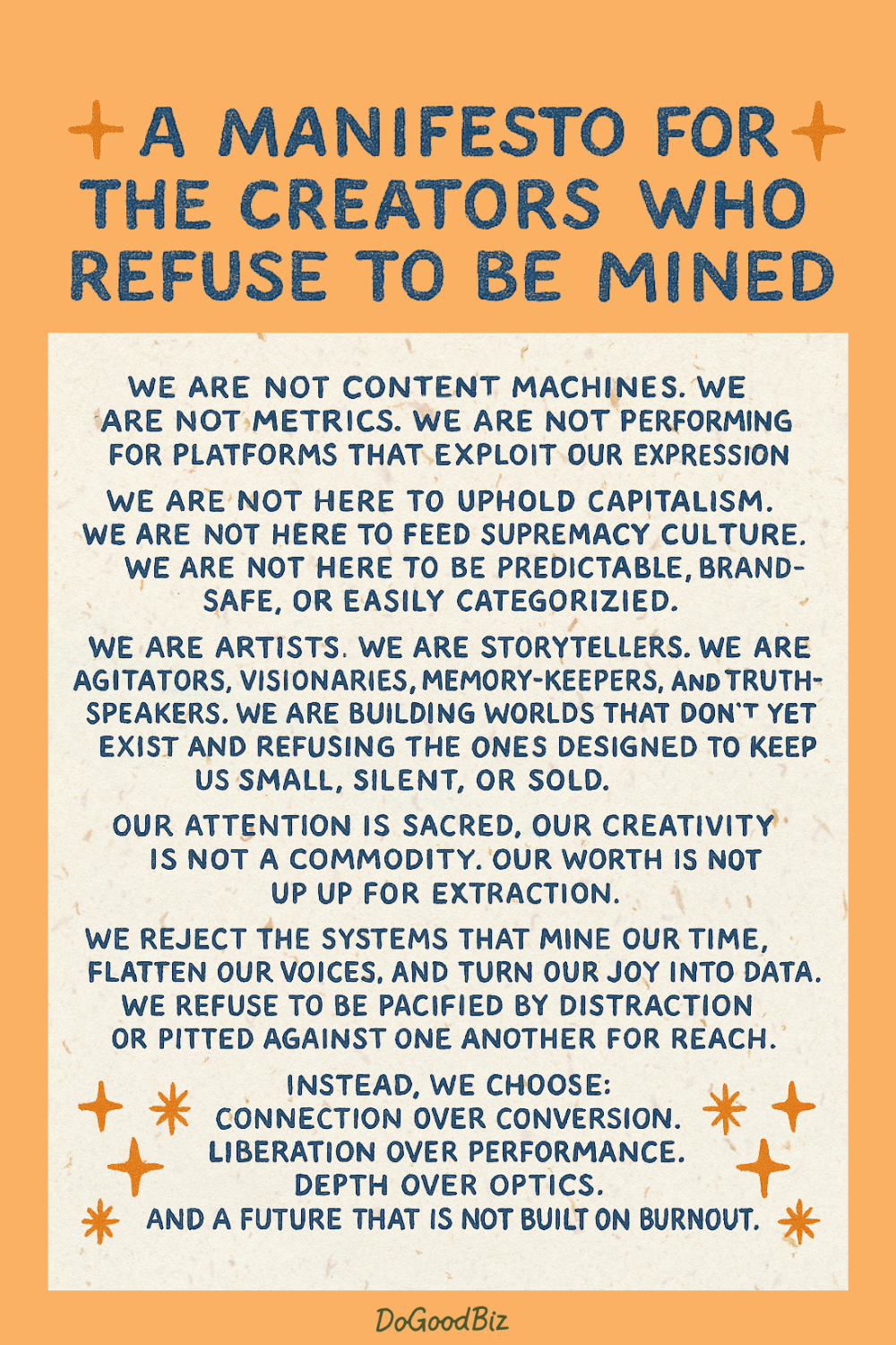 These aren’t abstract ideals, they’re lifelines. Because reclaiming your attention is an act of creative rebellion in a world built to keep you overwhelmed and disconnected from your own voice.
