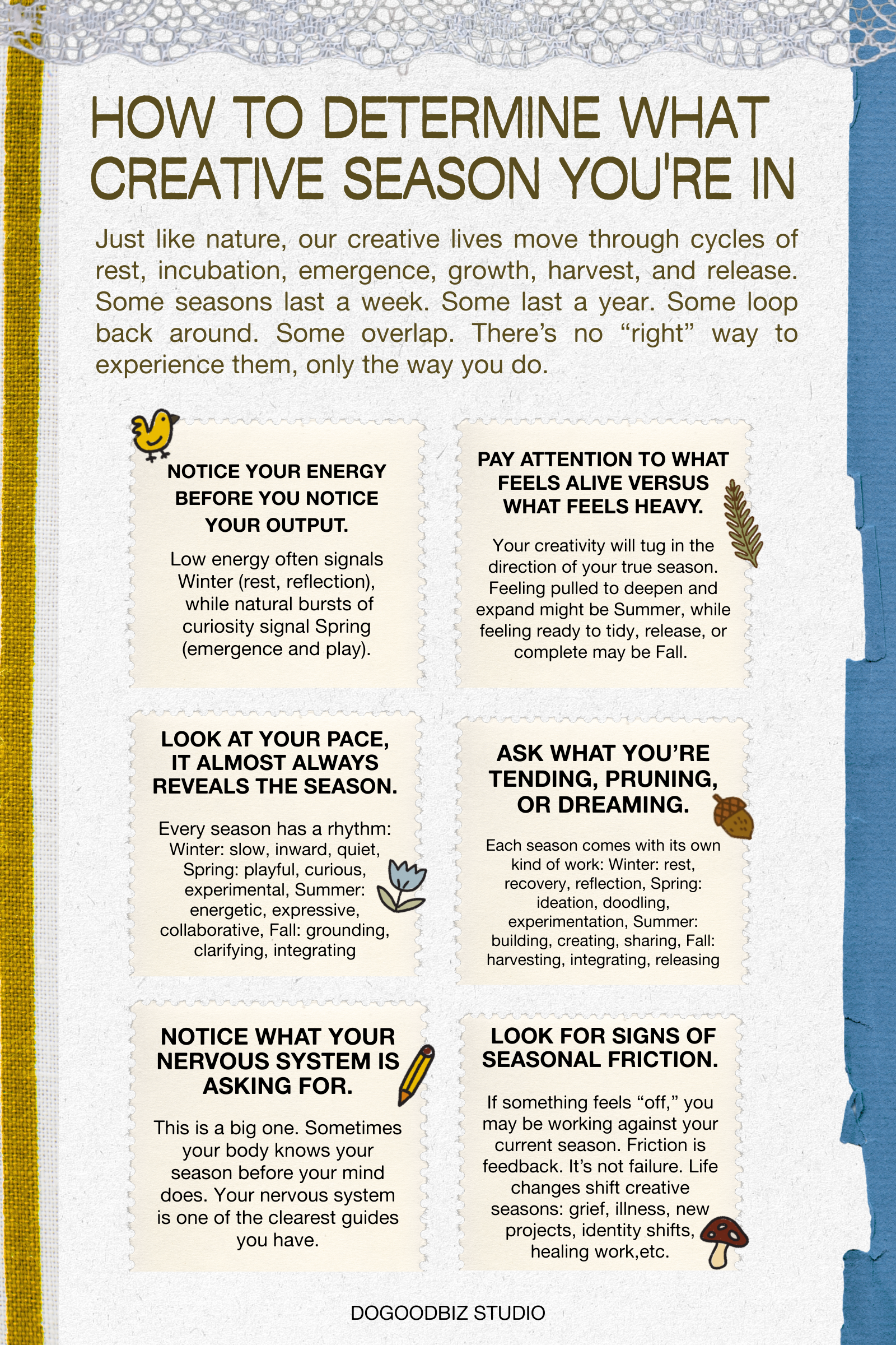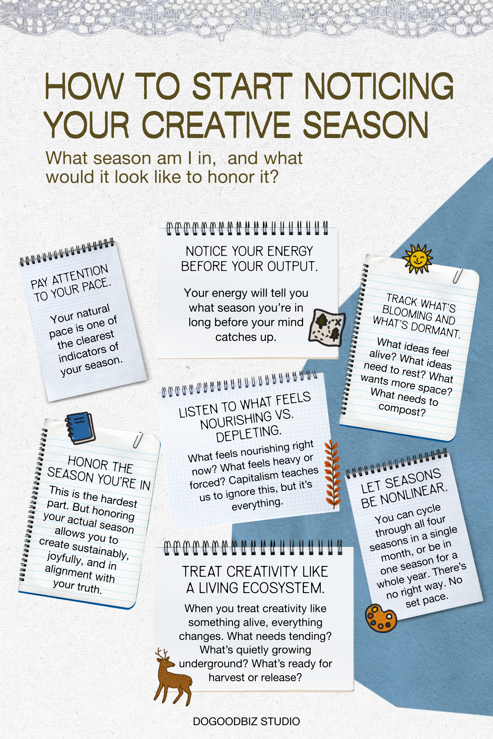 All of those things needed to die for something more honest, humane, and sustainable to take root. And as that version of me fell away, something beautiful happened: I started to recognize my inner creative seasons for the first time. My capacity changed. My pace changed. The way I wanted to create changed.